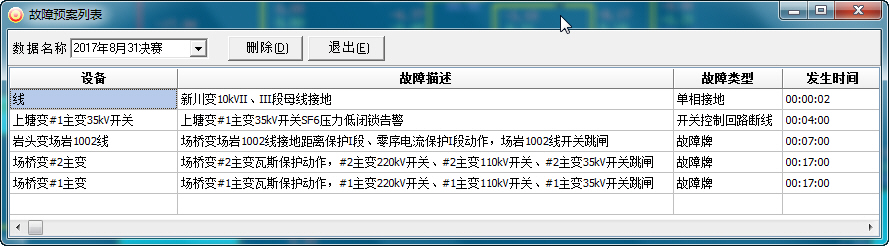 2.故障設(shè)置與動(dòng)作:能夠按照實(shí)際需要設(shè)置各種故障,圖4為本次競(jìng)賽預(yù)賽的事故預(yù)案。包括了單相接地、控制回路斷線、線路故障、主變故障。