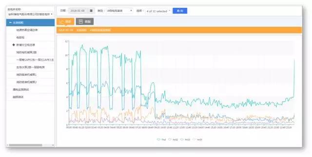 電力數(shù)據(jù)查詢可查詢?nèi)我慌潆娀芈纺程斓碾娏\行數(shù)據(jù)(相電壓、線電壓、電流、頻率、功率因數(shù)、有功功率、無功功率、視在功率),數(shù)據(jù)以圖表和表格的形式顯示,并可將表格數(shù)據(jù)導(dǎo)出至Excel;