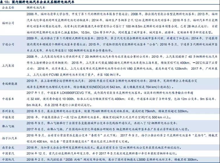 我們認(rèn)為2018年是氫能源產(chǎn)業(yè)化應(yīng)用元年,未來3-5年是導(dǎo)入期,5-10年后開始進(jìn)入成長(zhǎng)期,時(shí)間上展望,是2025年前后的事情。目前國(guó)內(nèi)市場(chǎng)尚處于概念期向真實(shí)導(dǎo)入期轉(zhuǎn)化的時(shí)間節(jié)點(diǎn),未來3年左右的導(dǎo)入期產(chǎn)業(yè)鏈的場(chǎng)景會(huì)是配套設(shè)施先行,之后再是商用車生產(chǎn)制造的跟進(jìn),可能會(huì)伴隨有國(guó)外乘用車進(jìn)入中國(guó)市場(chǎng)。所以整條產(chǎn)業(yè)鏈我們要關(guān)注的是:1)氫能源的生產(chǎn)及其設(shè)備等附屬產(chǎn)業(yè);2)加氫站運(yùn)營(yíng)服務(wù)產(chǎn)業(yè);3)燃料電池核心技術(shù)的突破和氫能源商用車生產(chǎn)制造產(chǎn)業(yè)鏈。