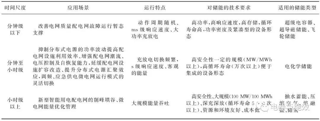 電力系統(tǒng)需求多樣,應(yīng)用環(huán)境復(fù)雜,為滿足不同工況需求,儲能選型應(yīng)結(jié)合本體的技術(shù)特點。按照放電時間長短,儲能可分為功率型和能量型,針對不同工況儲能選型的分類如表2所示。