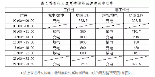 在參與的某銀行大廈儲能項(xiàng)目的建設(shè)規(guī)模分析中,最終選定儲能系統(tǒng)PCS功率為1MW,儲能系統(tǒng)規(guī)模為1MW/2.58MWh。下面針對大廈內(nèi)負(fù)荷曲線,分析儲能系統(tǒng)接入后的影響,驗(yàn)證儲能系統(tǒng)規(guī)模是否準(zhǔn)確、合理。