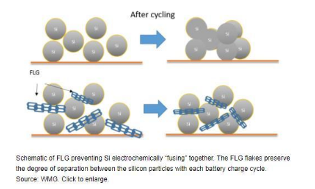 據(jù)外媒報道,華威大學制造工程系(Warwick Manufacturing Group,WMG)的研究人員研發(fā)了硅-高質(zhì)量薄層石墨烯(Silicon-Few Layer Graphene,Si-FLG)復合電極(composite electrodes),將其用作為鋰離子電池陽極石墨的高效替代品。