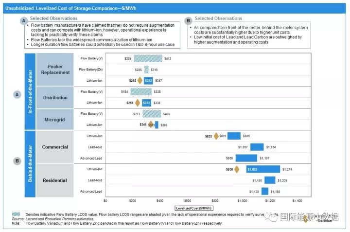 美國(guó)LAZARD公司日前發(fā)布一年一度的美國(guó)各類(lèi)儲(chǔ)能技術(shù)應(yīng)用平準(zhǔn)成本(LazardLevelizedCostofStorageVersion3.0)數(shù)據(jù)。