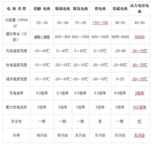由上表可以看出動(dòng)力電容電池在多種性能上是優(yōu)于如今的主流電池的。