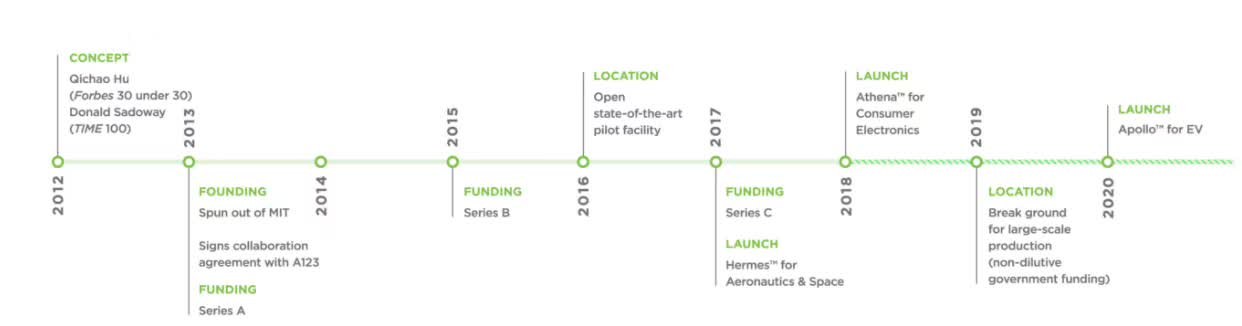 SolidEnergy Systems是美國麻省理工大學能源實驗室脫胎出來的一家材料科技公司,成立于2012年,創(chuàng)始人胡啟朝當時師從世界著名的電池專家Donald Sadoway,后者的電池項目曾得到比爾·蓋茨的支持。