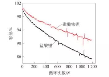 錳酸鋰和磷酸鐵鋰電池1C充放循環(huán)容量退貨數(shù)據(jù)