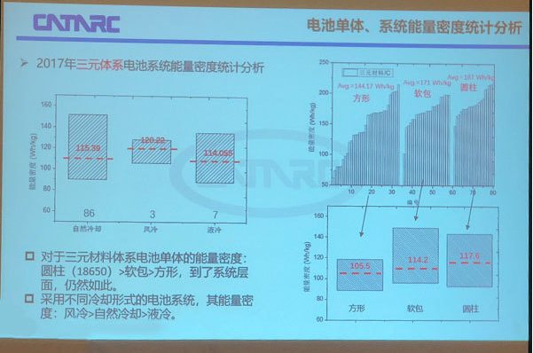 王芳提到,冷卻方式方面,中汽中心共比較了96款車(chē)型的冷卻方式,根據(jù)所對(duì)比出的數(shù)據(jù)得出的結(jié)論不是很準(zhǔn)確。因?yàn)樵谒袡z測(cè)的96款車(chē)型中只有3款使用了風(fēng)冷,7款使用了液冷。通過(guò)數(shù)據(jù)對(duì)比發(fā)現(xiàn),使用風(fēng)冷的動(dòng)力電池能量密度最高,其次是自然冷,液冷最低,她解釋道:這其實(shí)因?yàn)轱L(fēng)冷數(shù)據(jù)過(guò)少,若是相同的電池系統(tǒng),應(yīng)該是自然冷卻最高,然后是風(fēng)冷,其次是液冷,因?yàn)轱L(fēng)冷和液冷相比自然冷卻,需要的額外零部件增加了電池系統(tǒng)重量,并且在使用中需要額外消耗電力。