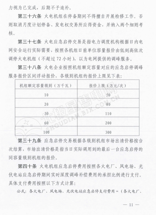 其中火電應(yīng)急啟停交易根據(jù)各級別機(jī)組市場出清價格按臺次算?;痣娖髽I(yè)按照機(jī)組額定容量對應(yīng)的應(yīng)急啟停調(diào)峰服務(wù)報價區(qū)間浮動報價。