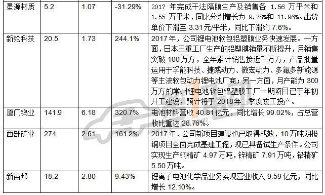 14家動(dòng)力鋰電池材料上市公司2017年報(bào)大比拼