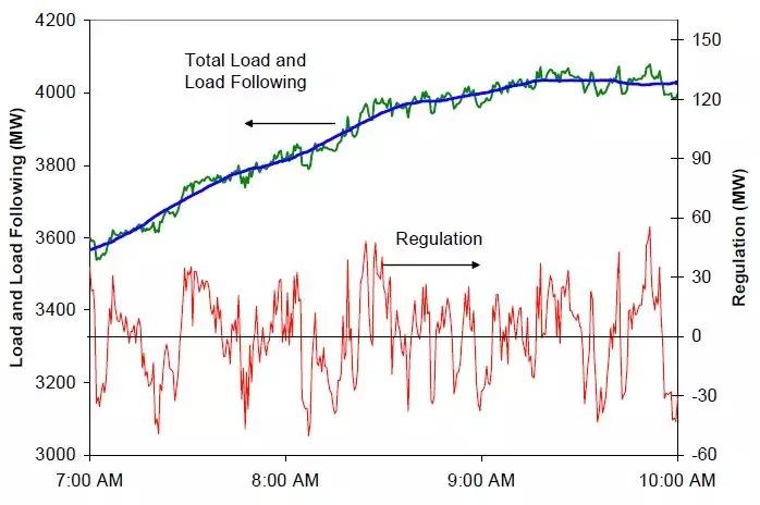 為了維持系統(tǒng)可靠性,電網需要實時平衡電力供給和需求,電網運營商密切關注負荷波動情況,需要預測負荷和提前安排發(fā)電計劃,但是難免會有短期的負荷預測錯誤或發(fā)電機組出力意外波動。由于發(fā)電和負荷需要近乎實時平衡,因此這些秒級到分鐘級的突然波動需要實時平衡,電網運營商依賴“調頻”資源調節(jié)微小的電力供需錯配,調頻資源根據(jù)運營商信號自動調節(jié)出力以平抑短期波動。