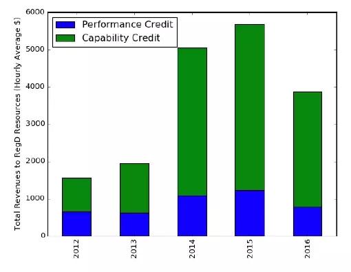 儲能調頻服務具有良好的精確性,但持續(xù)時間有限。近期PJM調整調頻規(guī)則是電力系統(tǒng)中精確性和持續(xù)性平衡的結果。調整后的市場規(guī)則能夠刺激各方在儲能開發(fā)和投資過程中更重視電量而不是功率。在條件中性新版RegD信號規(guī)則下,儲能能夠吸收或釋放更多能量將會獲得更高的性能得分。2016年PJM的性能合規(guī)經理Eric Hsia解釋:“PJM中電池儲能的未來取決于技術進步。如果電池儲能放電時間長于1小時,其想參與何種服務都可以”。然而,為了這些市場刺激能夠更有效,PJM需要調整估值系統(tǒng)以更好實現(xiàn)新信號規(guī)則的價值。