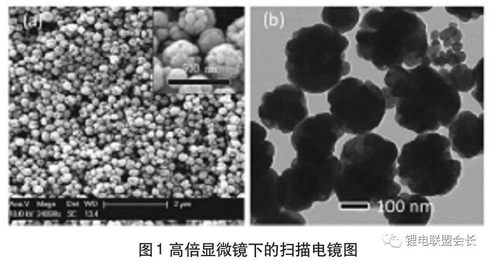 1碳負(fù)極材料:此種類型的材料無論是能量密度、循環(huán)能力,還是成本投入等方面,其都處于表現(xiàn)均衡的負(fù)極材料,同時也是促進鋰離子電池誕生的主要材料,碳材料可以被劃分為兩大類別,即石墨化碳材料以及硬碳。其中,前者主要包括人造石墨以及天然石墨。人造石墨的形成過程為:在2500℃以上的溫度中,將軟碳材料進行石墨化處理之后得到,MCMB屬于人造石墨中比較常用的一種,其結(jié)構(gòu)為球形,表面質(zhì)地較為光滑,直徑大約為5-40μm。由于受其表面光滑程度影響,使電極表面以及電解液之間發(fā)生反應(yīng)的幾率降低,進而降低了不可逆容量。同時,球形結(jié)構(gòu)能夠方便鋰離子在任何方向進行嵌入和脫出活動,對保障結(jié)構(gòu)穩(wěn)定具有較大的促進作用。天然石墨也具有諸多優(yōu)勢,其結(jié)晶度較高、可嵌入的位置較多,并且價格較低,是較為理想的鋰離子電池材料。但其也存在一定的弊端,例如在與電解液反應(yīng)時,相容性較差,在進行粉碎時表面存在諸多缺陷等,這都將對其充電或放電的性能產(chǎn)生較大的不利影響。此外,硬碳的形成過程為:在2500℃的狀態(tài)下,難以實施石墨化的碳材料,其主要為高分子化合物的熱解碳,通過高倍顯微鏡能夠看出,其是由許多納米小球堆積而成,整體呈現(xiàn)出花團簇狀,具體如圖1所示。在其表面具有大量納米孔的無定形區(qū)域,在容量方面遠(yuǎn)遠(yuǎn)超過石墨的標(biāo)準(zhǔn)容量,進而對循環(huán)能力產(chǎn)生較大的不利影響。