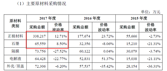 同時,再從其成本供給端看,2015年至2017年,占公司主營業(yè)務成本比例最高的為直接材料,占比分別為78.60%、81.21%和83.75%,因此原材料價格波動是影響公司成本的主要因素。在此期間,正極材料平均采購價格逐年升高,主要原因為鈷、鋰等金屬價格的上漲。其鋰電池材料主要包括三元前驅(qū)體等,報告期內(nèi)銷售價格有所波動,均價從2015年的6.35萬元/噸降至2016年的5.24萬元/噸,又升至2017年的8.15萬元/噸,2016年售價較2015年下降主要是因為主要原材料之一金屬鈷的價格在2015 年和2016年整體上趨于下降,在2016年下半年以后才開始回升。2017年,鈷價延續(xù)上漲趨勢。2016年石墨平均采購價格有所降低,但是2017年由于石墨市場供需關(guān)系變化,出現(xiàn)供應緊張的現(xiàn)象,其石墨采購價格也出現(xiàn)上漲。原材料款的成本上升使得其毛利空間又進一步縮小。