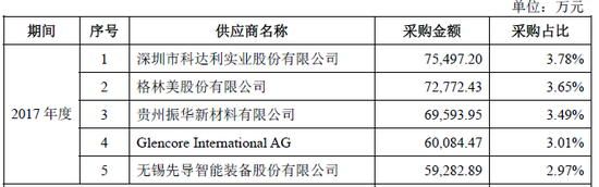 同時,新浪財經(jīng)翻閱其前五大供應商發(fā)現(xiàn),其2017年第一大供應商深圳市科達利實業(yè)股份有限公司采購金額為75497.20萬元,但是新浪財經(jīng)翻閱其年報的前五大銷售額,最大的銷售額為73561.53萬元,這中間近2000萬的差額到底去哪了?如此嚴謹?shù)恼泄蓵碚撠攧諗?shù)據(jù)本該嚴謹,這究竟又是什么原因呢?