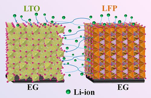 最近,該研究團隊率先開發(fā)出一種全固態(tài)平面集成化的鋰離子微型電池。該鋰離子微型電池以納米鈦酸鋰納米球為負極,磷酸鐵鋰微米球為正極,高導電石墨烯為非金屬集流體,離子凝膠為電解液,具有平面十指交叉構型且無需使用傳統(tǒng)隔膜和金屬集流體。獲得的鋰離子微型電池具有多方向傳質的優(yōu)勢,表現(xiàn)出高體積能量密度125.5mWh/cm3,優(yōu)異的倍率性能;超長的循環(huán)穩(wěn)定性,3300次循環(huán)后容量基本沒有衰減;以及良好的機械柔性,在反復彎曲或扭曲下其電極結構無損壞以及電化學性能無明顯變化。同時,該微型儲能器件能在100°C的高溫環(huán)境下穩(wěn)定工作且具有長循環(huán)穩(wěn)定性(1000次循環(huán))。此外,該鋰離子電池無需金屬連接體便能實現(xiàn)模塊化自集成,實現(xiàn)輸出電壓和容量的有效調控。因此,該鋰離子微型電池在柔性化、微型化電子器件的應用中具有很大潛力。