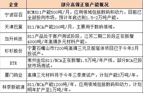 從需求側(cè)情況看,國內(nèi)部分高鎳正極材料企業(yè)已經(jīng)逐步獲得商用車、乘用車企的認(rèn)證,市場應(yīng)用開始加速。今年上半年高鎳三元材料NCM811/NCA已呈現(xiàn)出供不應(yīng)求的狀態(tài)。