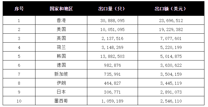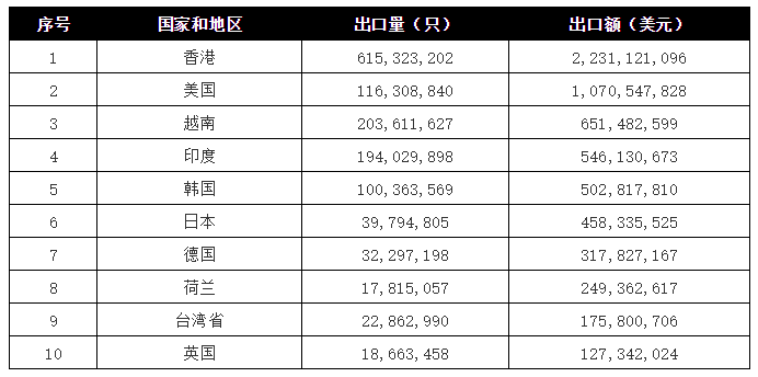 3、越南,繼香港和美國之后,成為目前增長最快的市場,2017年出口越南金額約為6.86億美元,占中國出口總額約5.17%,2016年出口越南金額約為6.39億美元,同比增長約7.36%。