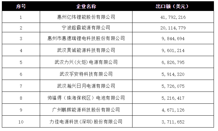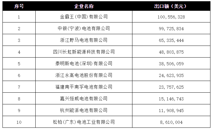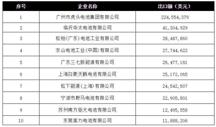 3、2017年鋰離子蓄電池出口前十大企業(yè)