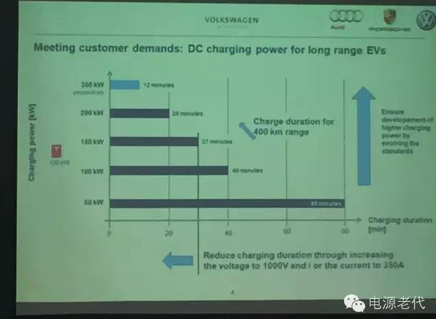 未來的方向是往高電壓、大功率方向走,歐洲車企很早就提出了這個(gè)方向,下面是大眾公司的路標(biāo):