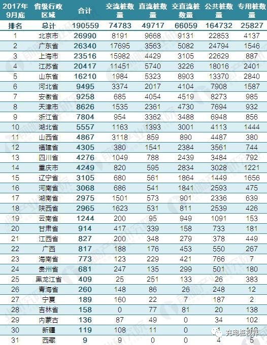截止到2017年9月,省級行政區(qū)域內(nèi)所擁有的公共類充電樁數(shù)量前十的分別為:北京26990個、廣東26340個、上海23516個、江蘇20417個、山東16210個、安徽9495個、河北9258個、天津8626個、浙江7804個、湖北5557個。