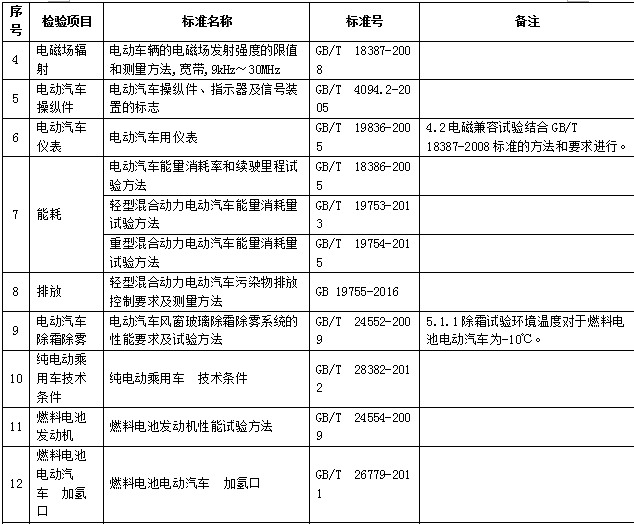 新能源汽車產(chǎn)品專項(xiàng)檢驗(yàn)標(biāo)準(zhǔn)目錄