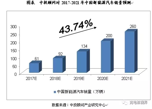 綜合以上因素,我們預(yù)計,2017年我國新能源汽車銷量將達(dá)到61萬輛,未來五年(2017-2021)年均復(fù)合增長率約為43.74%,2021年將達(dá)到260萬輛。