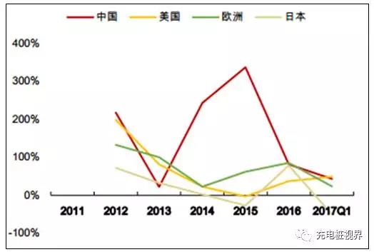 2017年全球新能源汽車銷量情況分析預(yù)測從全球產(chǎn)銷分析,新能源乘用車銷量從 2012 年 的 11.6 萬輛增至 2016 年的 75.1 萬輛,近五年持續(xù)保持 75%的年化平均增速。預(yù)計 2017 年有望達(dá)到 110-120 萬輛。2017 年 Q1 受到中國、歐洲等地銷量受挫影響(中國受 17 年新能源補(bǔ)貼新政影響較大),同比增速放緩至 30.2%,17 年 3 月,隨著中國市場銷量逐步回暖,全球新能源汽車已呈抬頭之勢。