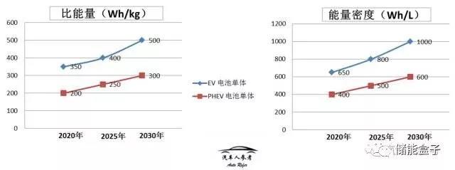 根據(jù)16年發(fā)布的“節(jié)能與新能源汽車技術(shù)路線圖”,我們可以大概對動力電池發(fā)展趨勢有一個概念,下圖所示,到2020年,純電動汽車電池單體比能量要達(dá)到350Wh/kg