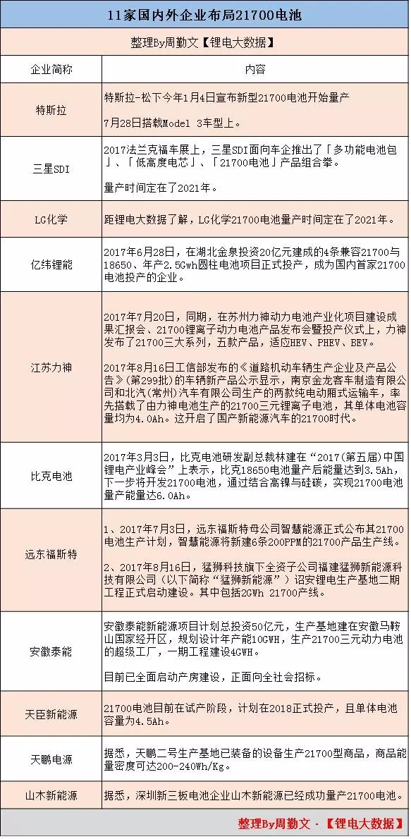 各大企業(yè)對21700電池的具體布局如圖下所示: