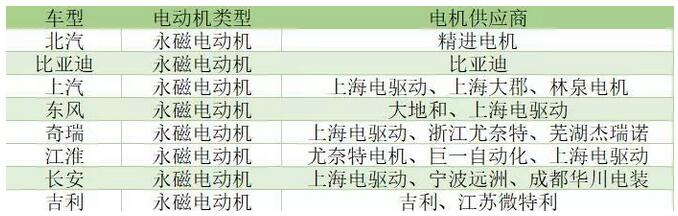 國內(nèi)乘用車電機類型及供應(yīng)商