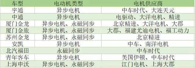 國內(nèi)商用車電機類型及供應(yīng)商