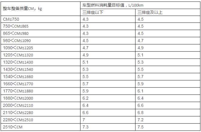 乘用車企業(yè)平均燃料消耗量目標值,按照《乘用車燃料消耗量評價方法及指標》(GB27999–2014)第5.2款計算。乘用車企業(yè)平均燃料消耗量實際值,按照《乘用車燃料消耗量評價方法及指標》第5.1款計算。