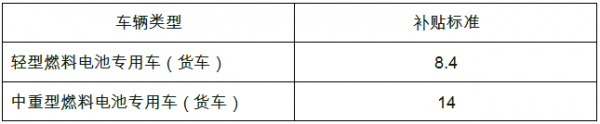 4.燃料電池專用車(貨車)補貼標準: