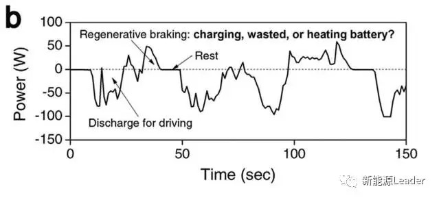 我們知道在電動汽車的使用過程中,除了正常行駛外,還會發(fā)生剎車等情況,電動汽車在剎車等過程中一般都會進行能量回收,在鋰離子電池溫度足夠的時候,這部分能量會直接存儲在鋰離子電池中,但是當(dāng)鋰離子電池溫度過低時,為了防止鋰離子電池在低溫下充電造成負極表面析鋰,這部分能量通常被浪費掉。Guangsheng Zhang利用自加熱電池快速自加熱的特性,設(shè)計了低溫下的制動能量回收管理程序,在電池溫度較低時,回收能量會首先用于加熱電池,當(dāng)電池溫度加熱到合適溫度后,然后會將回收的能量存儲到電池。