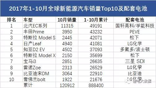 原標題:前10月全球銷量Top10的電動汽車 用了誰的電池?