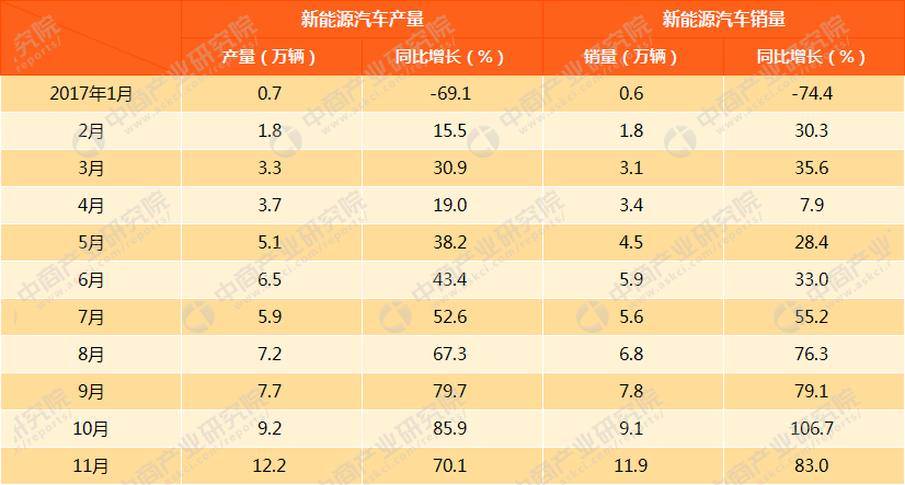 2017年11月新能源汽車產(chǎn)銷情況分析(附圖表)