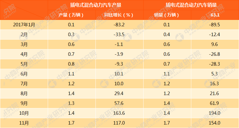2017年11月中國(guó)插電式混合動(dòng)力汽車產(chǎn)銷量