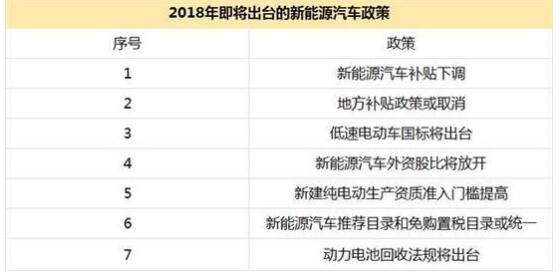 接下來,再讓我們看一下,在2018年有哪些即將出臺的政策對于消費者而言是值得關(guān)注的。首先,自去年11月中旬開始,網(wǎng)絡(luò)上就已經(jīng)出現(xiàn)了2018年新能源汽車補貼草案??傮w來看,補貼草案的調(diào)整將是補貼退坡、重乘弱商、削低補高、加嚴(yán)門檻、精準(zhǔn)細(xì)化。其中,主要將影響到續(xù)駛里程偏低的車型。