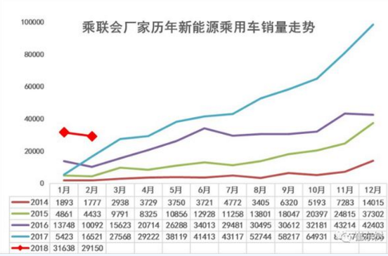 乘聯(lián)會(huì)2月新能源乘用車銷量出爐。根據(jù)乘聯(lián)會(huì)廠家數(shù)據(jù),2月新能源乘用車銷量達(dá)到29150臺(tái),同比增長(zhǎng)76%,但環(huán)比1月銷量下降7%。綜合1月銷量看,新能源汽車產(chǎn)銷在2018年呈現(xiàn)開門紅特征。