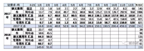 18年1-2月新能源車碳酸鋰需求1611噸、鈷需求196噸