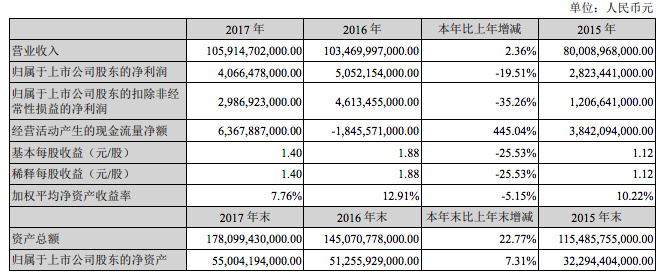 數(shù)據(jù)顯示,公司實現(xiàn)1059.15億元的收入,同比增長2.36%。歸屬于上市公司股東的凈利潤為40.66億元,同比下降19.51%。導(dǎo)致這一結(jié)果的原因有二:新能源補貼的下降;以及公司燃油汽車的銷量同比下降24.62%。