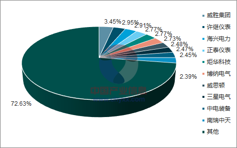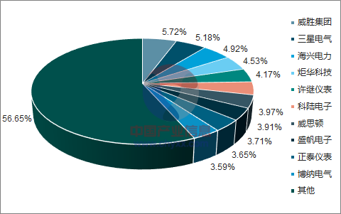 國(guó)內(nèi)市場(chǎng)主要為國(guó)網(wǎng)和南網(wǎng)集中招標(biāo)采購(gòu),標(biāo)準(zhǔn)統(tǒng)一,市場(chǎng)化程度較高。智能電表招標(biāo)首先由各省電力公司上報(bào)需求,再由國(guó)家電網(wǎng)和南方電網(wǎng)統(tǒng)一招標(biāo)。每年國(guó)家電網(wǎng)平均會(huì)開展 3-4 次智能電表招標(biāo),南方電網(wǎng)也有 1-2 次。國(guó)家電網(wǎng)和南方電網(wǎng)采取的均衡策略也制約了行業(yè)集中度提高, 國(guó)家電網(wǎng)和南方電網(wǎng)智能電表及終端設(shè)備集中招標(biāo)中標(biāo)的生產(chǎn)廠商約 100 家左右,每年招標(biāo)數(shù)量巨大,中標(biāo)廠商相對(duì)分散。近兩年由于智能電表建設(shè)告一段落,新的技術(shù)標(biāo)準(zhǔn)還在醞釀,國(guó)網(wǎng)和南網(wǎng)采購(gòu)量呈整體下降的趨勢(shì),每年招標(biāo)次數(shù)減少,中標(biāo)廠商數(shù)量也相應(yīng)減少。但隨著新的智能電表標(biāo)準(zhǔn)出臺(tái),以及新一輪的智能電表改造,國(guó)內(nèi)市場(chǎng)將繼續(xù)呈現(xiàn)較大市場(chǎng)需求。綜合 2015 年至 2017 年 5 月國(guó)家電網(wǎng)公司電能表及用電信息采集設(shè)備招標(biāo)中標(biāo)情況,威盛集團(tuán)、河南許繼儀表有限公司、海興電力、 浙江正泰儀器儀表有限責(zé)任公司等生產(chǎn)廠商處于單相智能電能表市場(chǎng)的領(lǐng)先位置,排名前 10 的供應(yīng)商市場(chǎng)份額達(dá) 27.36%。威盛集團(tuán)、三星醫(yī)療、海興電力、炬華科技等生產(chǎn)廠商處于三相智能電能表市場(chǎng)的領(lǐng)先位置,排名前 10 的供應(yīng)商市場(chǎng)份額達(dá) 43.36%。