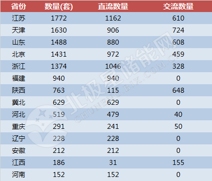 從功率來看,山東省需求量最大,為109586kw,江蘇省第二,99950kw,浙江省第三,84216kw。