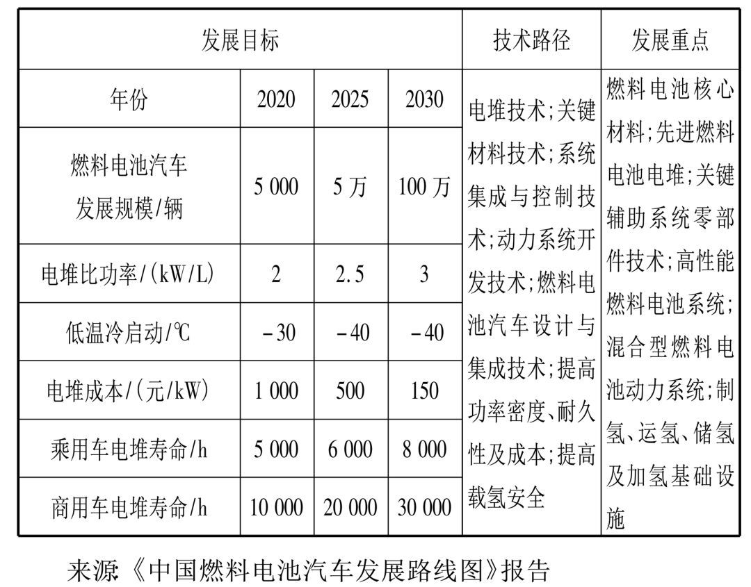 2030 年實(shí)現(xiàn)百萬輛燃料電池汽車的商業(yè)化應(yīng)用,建成 1000 座加氫站。
