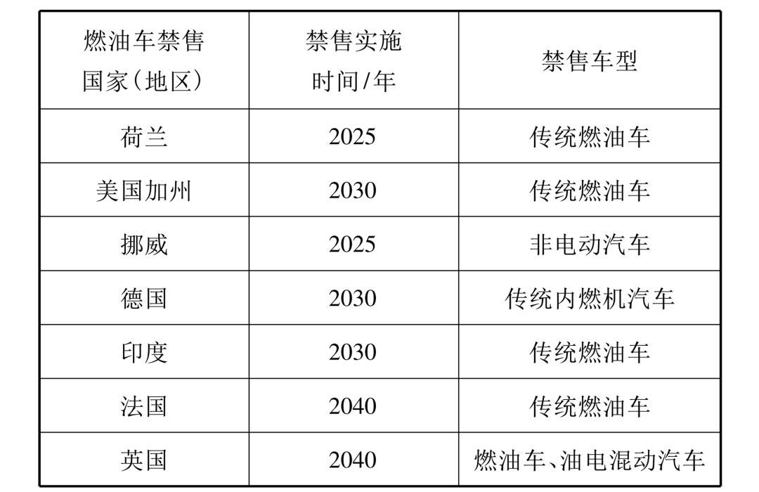表 1 各國禁售傳統(tǒng)能源汽車禁售時(shí)間表