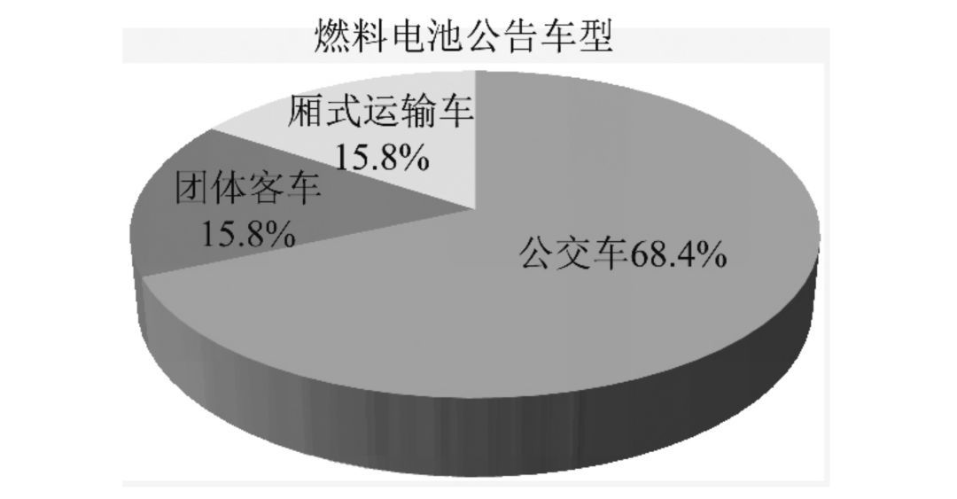 根據(jù)最新一批公告顯示,燃料電池汽車有效公告車型包括團(tuán)體客車 3 輛、公交車 13 輛以及廂式運(yùn)輸車 3 輛,而到目前為止,燃料電池乘用車還未上公告,如圖 1 所示。其中,燃料電池公交車將近占 7 成,通過公交車示范運(yùn)行驗(yàn)證燃料電池客車的動力性、經(jīng)濟(jì)性和可靠性,積累運(yùn)行數(shù)據(jù)和經(jīng)驗(yàn),提高公眾對氫安全應(yīng)用的認(rèn)識,發(fā)現(xiàn)技術(shù)不足并加以改進(jìn),不斷完善加氫站的建設(shè),有利于推動我國燃料電池汽車產(chǎn)業(yè)的發(fā)展。