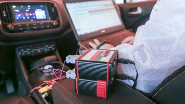 工程師在采集數(shù)據(jù),觀測(cè)車輛在充電狀態(tài)下的電流、電壓、SOC的變化