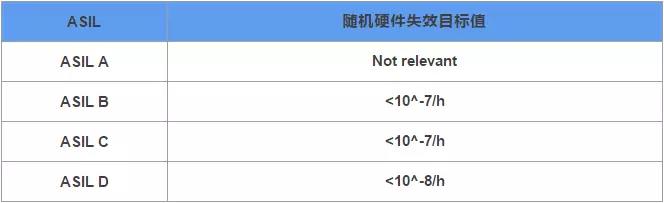 不同安全等級(jí)產(chǎn)品的隨機(jī)硬件失效率要求
