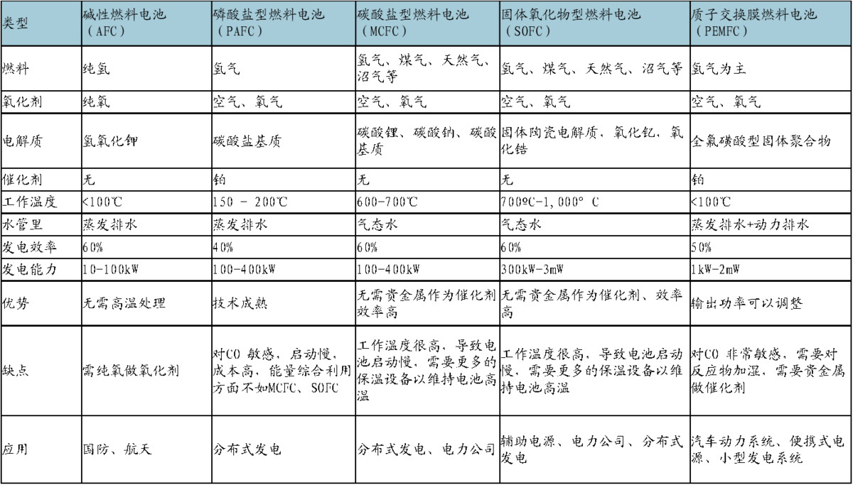 各類燃料電池指標(biāo)及應(yīng)用領(lǐng)域概述
