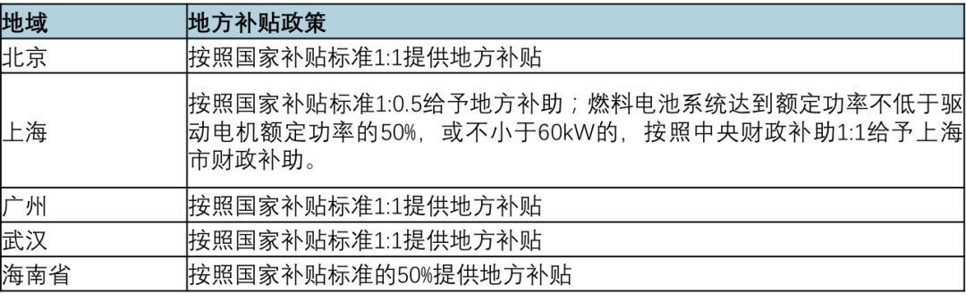 燃料電池汽車地方補貼標(biāo)準(zhǔn)